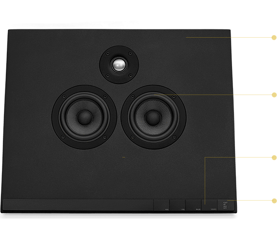 ロングストロークを可能にする100mm径ケブラーコーンウーファーをデュアルで搭載